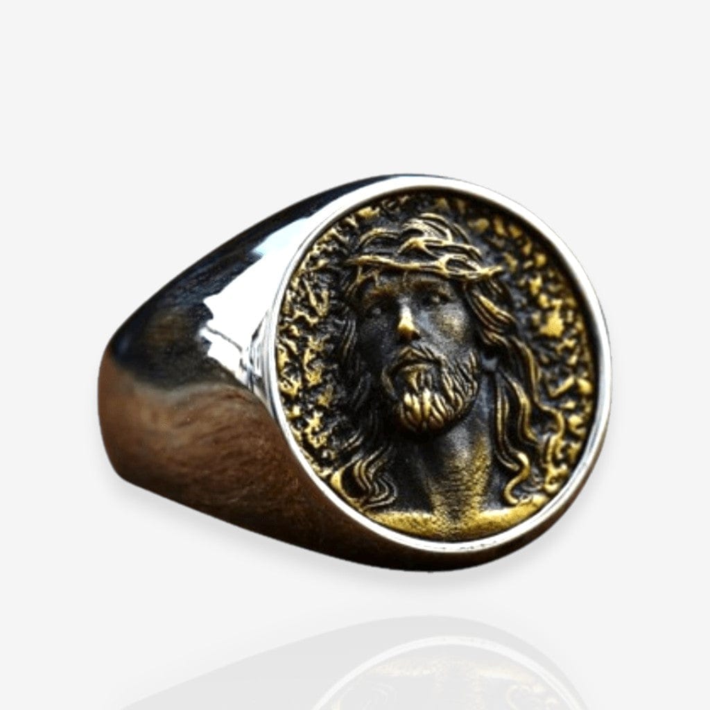 Chevalière Jésus Homme – Honneur, foi et fidélité gravés dans l’acier