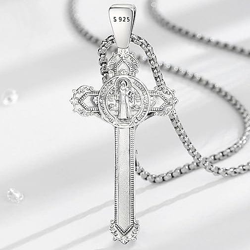 Avec son pendentif de 52 x 23 mm, ce collier offre une présence discrète mais marquante. Confectionné en véritable argent S925, il symbolise la pureté, l’endurance et la fidélité. Sa chaîne de 46 cm permet un port court, élégant et confortable, adapté aux hommes qui privilégient la simplicité durable.