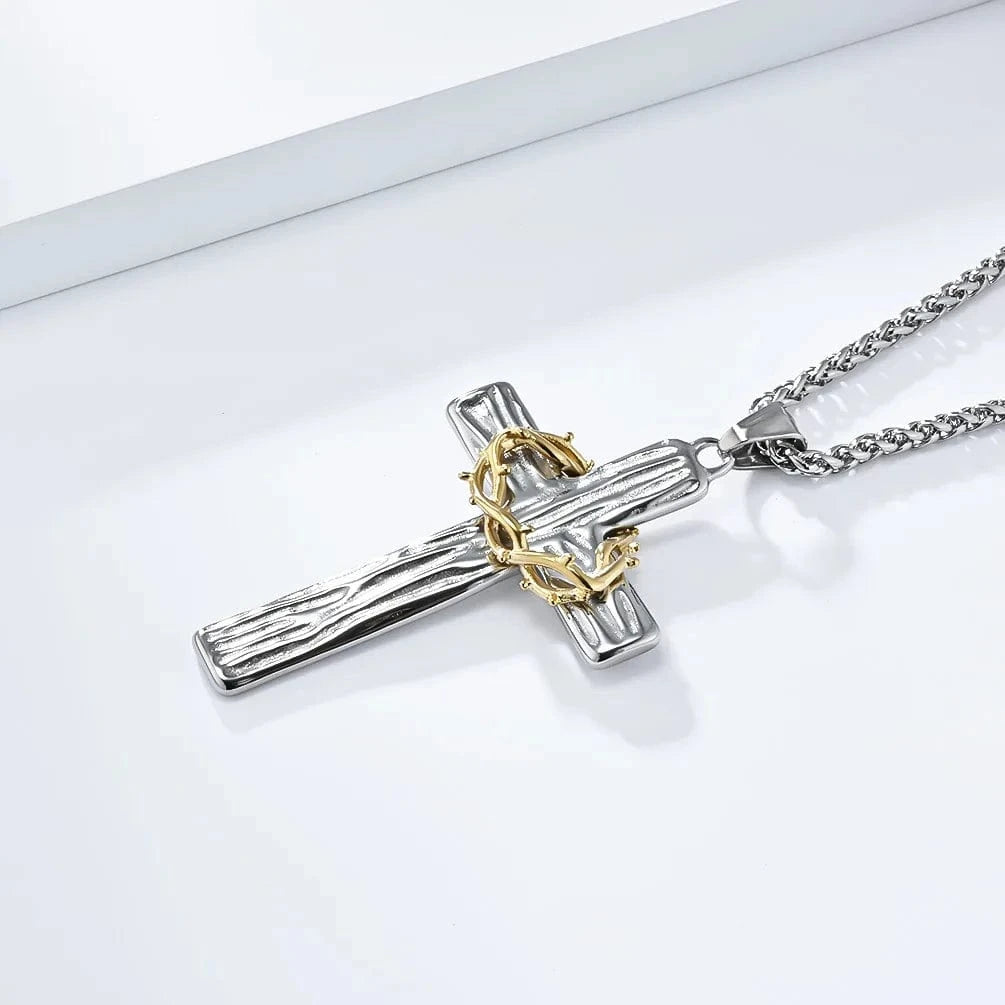 Collier Croix & Couronne d'Épines « Sacrifice »  : La souffrance sacrée, portée avec fierté