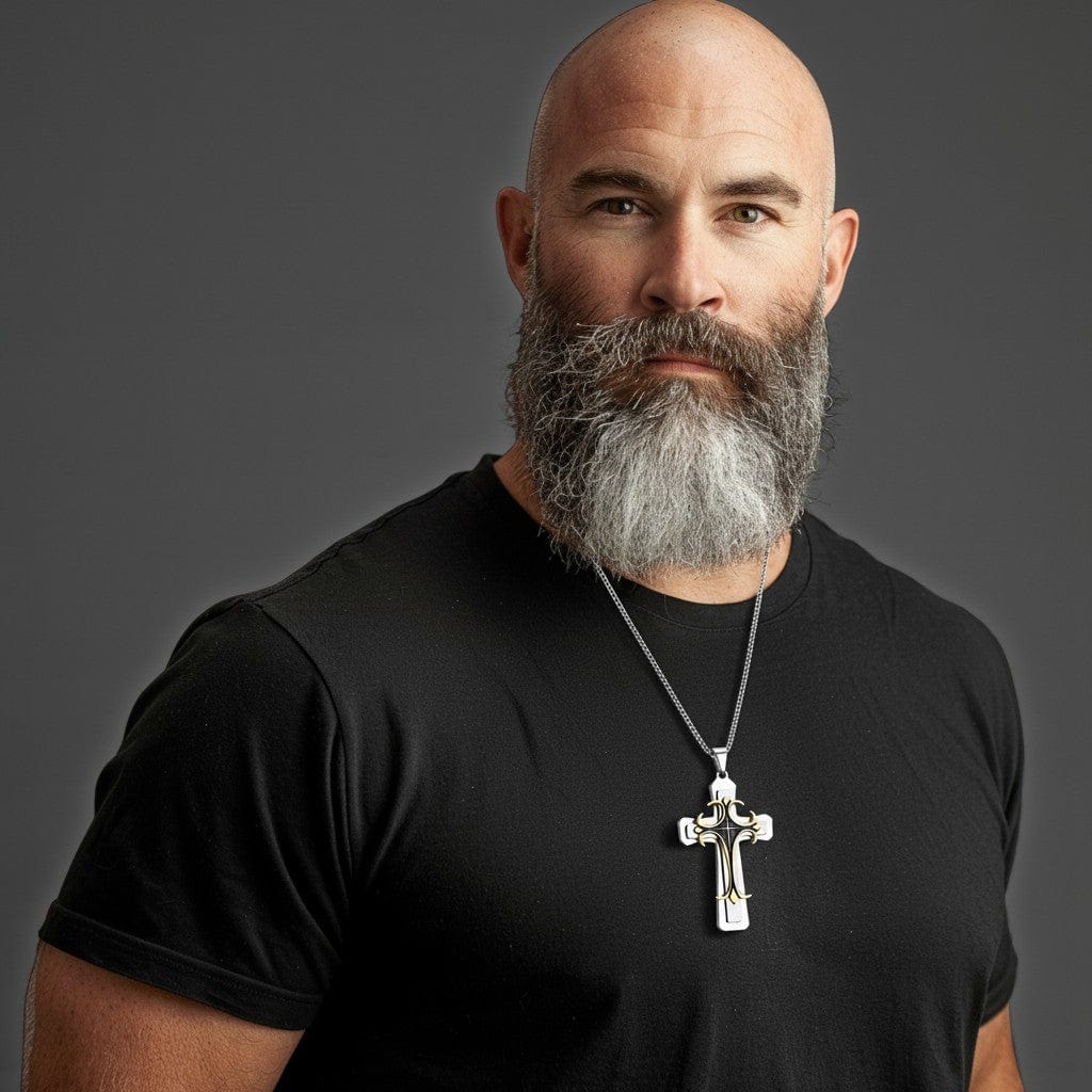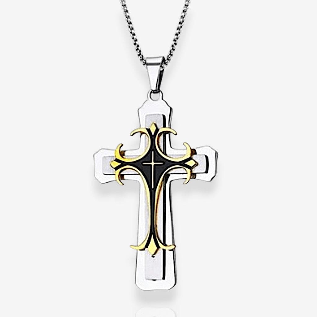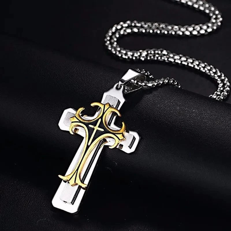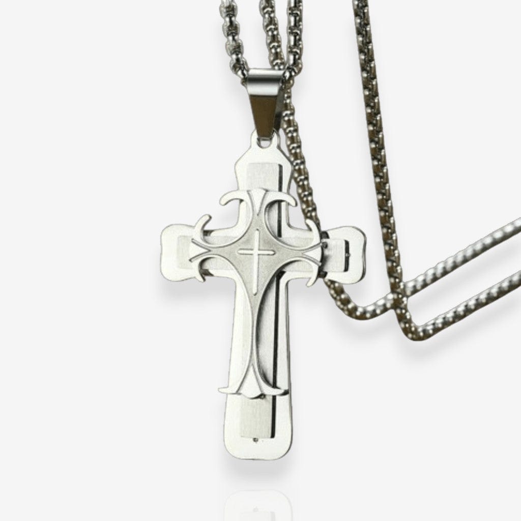 Le Collier Croix Religieuse en acier inoxydable est une déclaration de foi solide, enracinée dans l’héritage chrétien. Son design classique et sa taille généreuse en font un bijou puissant pour l’homme croyant qui souhaite afficher son engagement spirituel avec fermeté et élégance.