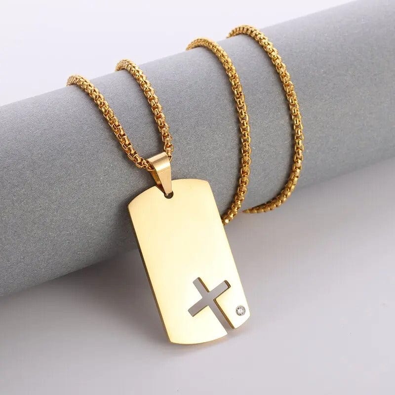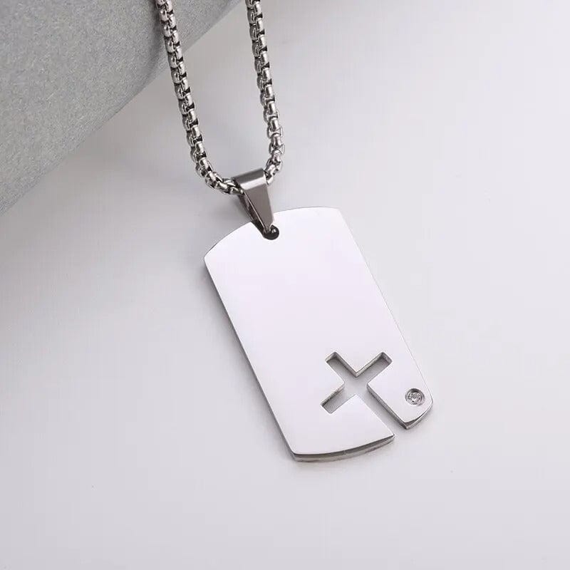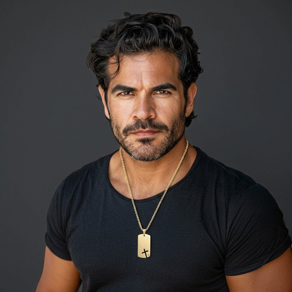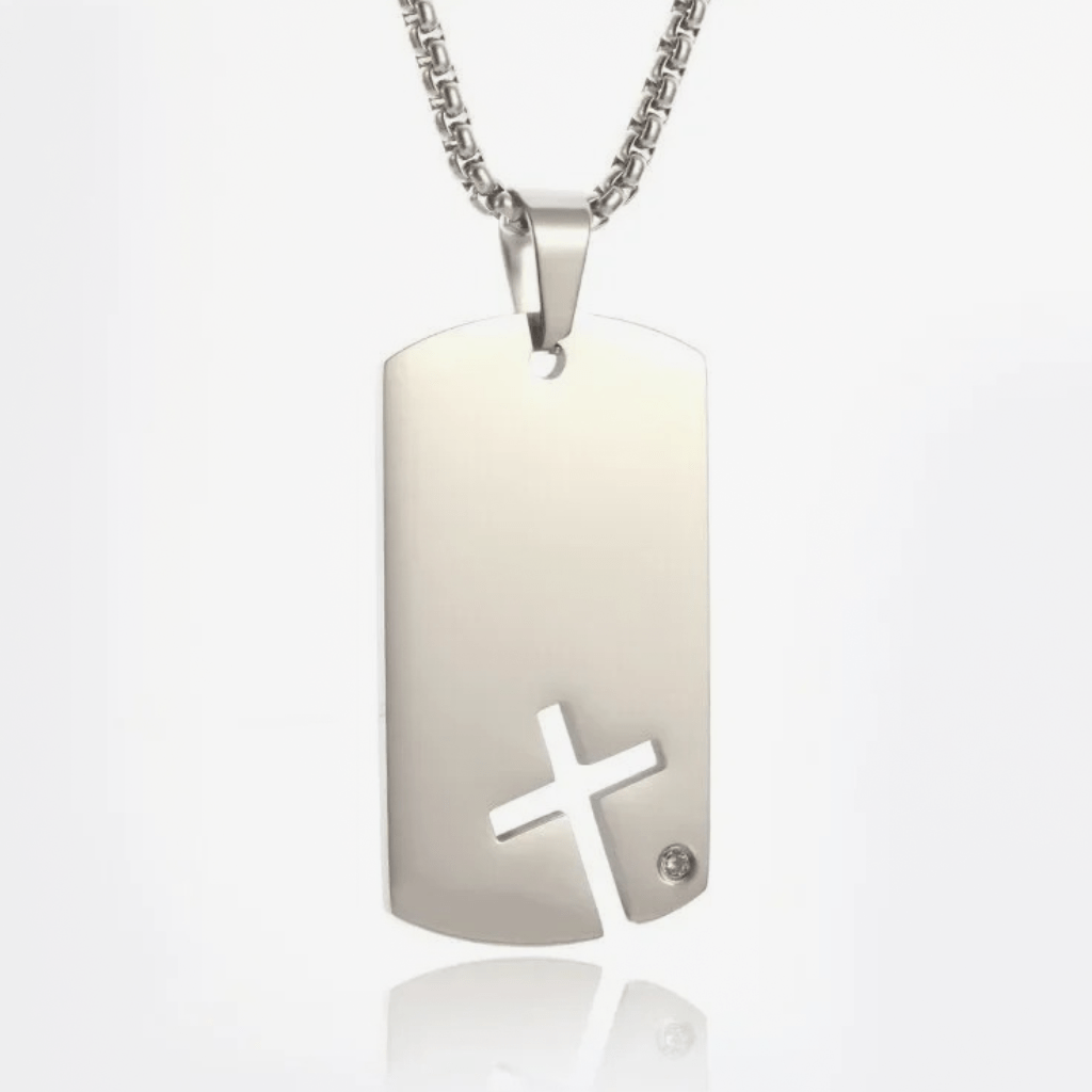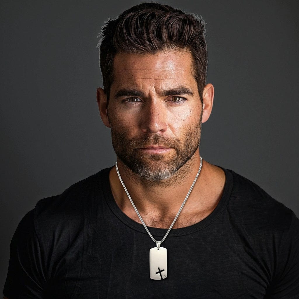Inspire respect et conviction avec le Collier Croix Plaque Militaire en acier inoxydable. Pensé pour l’homme chrétien au tempérament affirmé, ce bijou reprend l’esthétique des plaques d’identification militaires pour y inscrire le symbole sacré de la croix, fusionnant spiritualité et force intérieure.